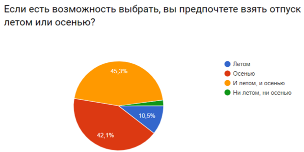 Подоспели результаты нашего опроса по поводу отдыха в бархатный сезон! Показательно, что при возможности выбора отправиться в отпускное путешествие летом или осенью, 42,1% респондентов отправились бы отдыхать осенью, и лишь 10,5%, то есть вчетверо меньше – летом. 45,3% при наличии такой возможности предпочли бы отдохнуть и летом, и осенью.